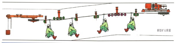 猴車,正式全稱為礦山架空乘人索道,主要用于地下礦山輔助運輸工人.猴車將鋼絲繩安裝在驅(qū)動輪、托繩輪、壓繩輪、迂回輪上并經(jīng)張緊拉緊裝置后,由驅(qū)動裝置輸出動力帶驅(qū)動輪和鋼絲繩運行,從而實現(xiàn)輸送礦工的原理。用架空乘人裝置來輸送礦工,其目的是縮短礦工上下井的路途時間,減輕礦工上下井的體能消耗。