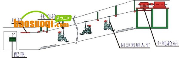 3、 制動可靠,本公司設計生產的繩索運人系統(tǒng)除高速工作制動外,在大于10°坡的系統(tǒng)設末端鉗形閘,制動裝置均為失效安全型,液壓泵站結構先進、安全、可靠。